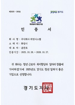 청년 일하기 좋은 기업 인증서