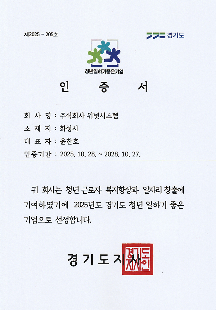 청년 일하기 좋은 기업 인증서